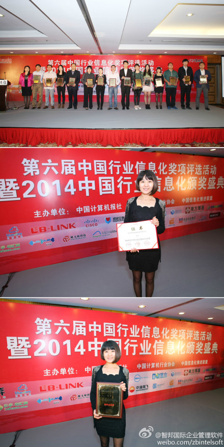 北京智邦国际软件技术有限公司荣获“2014年度中国行业信息化标杆企业奖”