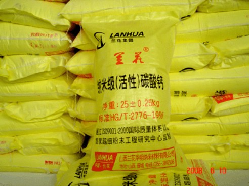 公司生产的兰花牌纳米活性碳酸钙粒径小、分布窄、活性高,具有极佳的功能性,广泛应用于涂料、密封胶、油漆、橡塑等行业,性能指标达到国际先进水平,填补了国内空白,曾被评为新产品,荣获上海科技博览会金奖,畅销全国各省市。