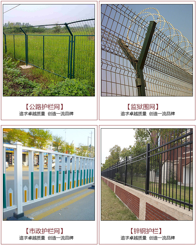 公司还对外供应各种护栏网配件立柱、球形立柱、桃型立柱(组合立住)及护栏网配套金属丝网。产品广泛应用于高速公路、铁路、机场、港口、码头、市政建设及煤矿工厂。可根据用户需求加工定做。