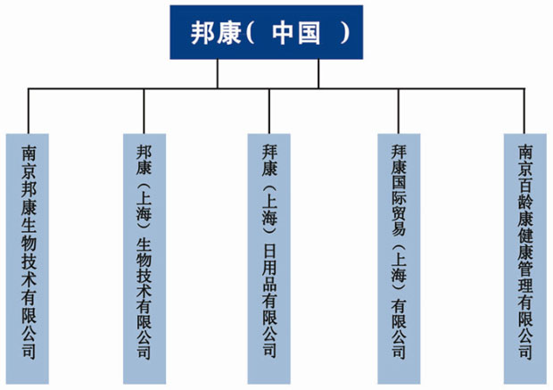 南京邦康生物技术有限公司隶属于邦康(中国)。邦康(中国)作为一家具有国际视野的集团化公司,始终立足于产品研发的最前沿,致力于成长为生命科学领域的世界级创新型企业,其核心业务领域涵盖保健食品、母婴产品、日化产品、电子商务及健康管理咨询。