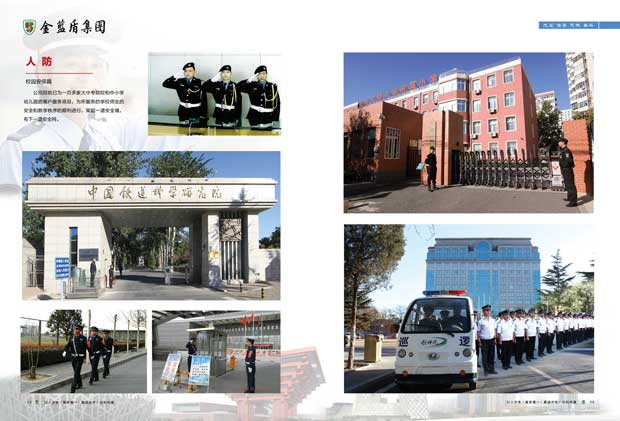 北京金蓝盾保安服务有限公司成立于2001年,取得北京市公安局的经营许可审批,具备合法资质,保安员有合法上岗证、资格证。下设第一分公司、第二分公司、第三分公司、第五分公司、第六分公司、丰台分公司、河南邓州分公司、南宁分公司、金蓝盾(香港)海事安保服务有限公司。服务项目涉及:大、中专院校和中小学保安、行政事业单位、街道办事处、公安辅警、公寓、社区、酒店、商场、娱乐场所、写字楼等。服务范围由北京市朝阳区拓展到海淀、西城、东城、丰台、大兴、通州、延庆、昌平等区,现在已发展到天津市、河北涿州市、上海浦东区、河南南阳市、濮阳等。