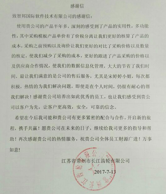 江苏常州长江齿轮有限公司是中国齿轮行业领导者,拥有25年专业齿轮生产经验,产品远销日韩、美国、巴西、加拿大、德国、荷兰、意大利等国家。为了更好的了解用户需求,快速生产极具竞争力的产品,精准提供超出期望的服务,长江齿轮部署了智邦国际ERP系统,实现客户、销售、合同、采购、库存、生产、售后、财务、人资到办公等所有资源一体化管控和数字化跟踪。系统对业务信息进行全面采集、互联互通和智能处理,并以实时、完整、无损的方式转化成多维图表、预警提醒、预测决策等,不断消除企业多余消耗,灵活应对市场多变需求,用高效率创造高效益。
