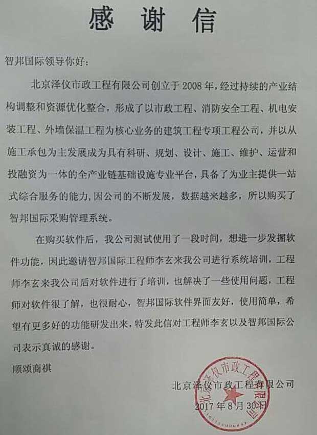 信息化采购将采购人员从繁琐的手工制单、人工审核、缓慢低效的工作模式中解决放出来,成为现代化采购的发展方向。相信在智邦国际采购管理系统的协助下,北京泽仪市政工程有限公司定能实现采购过程的合规化、集成化、透明化管理,精细化掌控供应商评估、询价、比价、定价、采购、质检等每个阶段,全面提升采购过程的工作、协同和管理效率。