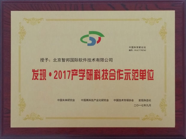 智邦国际被授予“发现•2017产学研科技合作示范单位”
