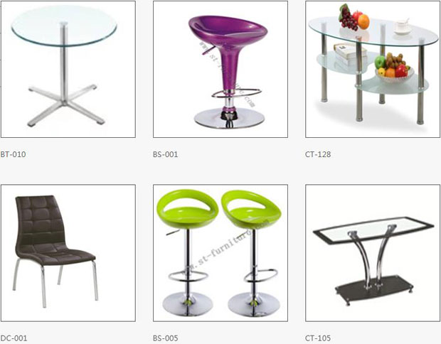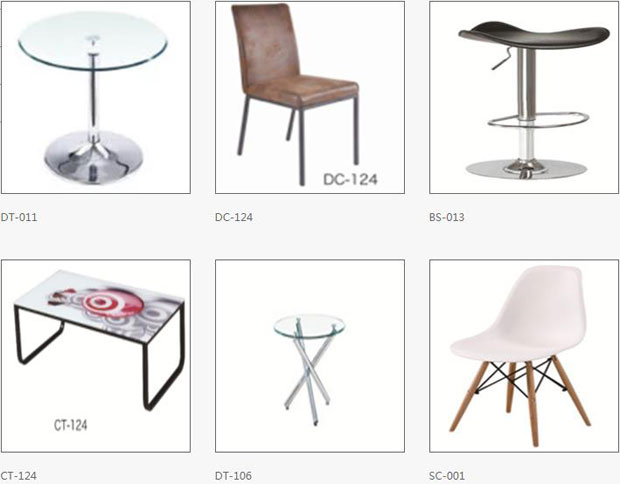 公司产品有餐厅家具、办公家具、餐馆家具三大类别。材料主要选用铝合金管材、镀锌钢管和钢化玻璃,原生塑料。产品适用于酒店、餐馆、酒吧、办公室及家居户内户外休闲娱乐活动场所。
