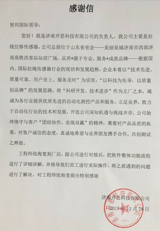 济南开思科技有限公司成立于2008年,位于美丽的泉城济南,目前是国内重要的拉线位移传感器研发单位和生产基地。公司具有独立产品设计开发能力,具有完全的知识产权,主导产品是拉绳位移传感器、角位移传感器、工控仪表和旋转编码器。