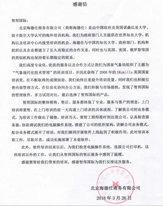北京海德仕商务有限公司智邦国际ERP系统实施现场