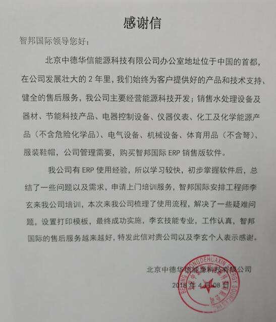 北京中德华信能源科技有限公司智邦国际ERP系统实施现场