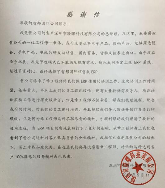深圳市隆曜科技有限公司智邦国际ERP系统实施现场