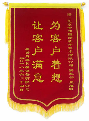 获嘉善辉煌机械设备有限公司锦旗致谢