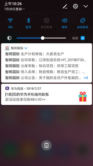 功能价值:智邦国际31.82版本APP端,新增消息实时弹屏提醒功能,无需登录APP也能及时查收消息,角标式提醒,消息数量一清二楚,下拉框提醒,默默展示最新消息,手机使用时来消息,直接无声弹出,没有任何打扰……不同型号手机对应不同提醒方式,再也不用担心遗漏消息!