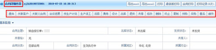 而在智邦国际ERP系统中,各个模块全都互联互通,业务可以一键流转。比如,合同一键生成生成预计划、派工、回款、费用、设计、出库、退货、采购、售后、邮件、通知等。或物料分析一键生成生产订单,同步派工、委外和预购……