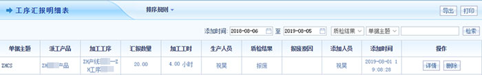 智邦国际ERP系统,在多维度统计分析中心基础上,支持数据一键穿透。比如,点一点工序不合格率分析表中的工序,可以穿透到对应工序汇报明细表,再点一点生产人员、报废原因等,还能穿透到更多、更细环节,层层追溯。