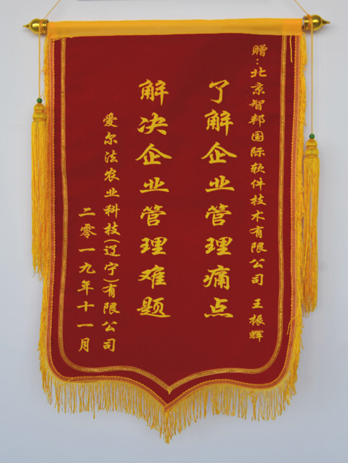 爱尔法农业科技(辽宁)有限公司锦旗致谢智邦国际ERP系统