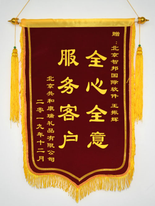 北京共和康瑞礼品有限公司向智邦国际送致谢锦旗