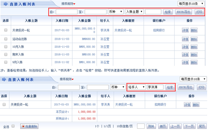 智邦国际ERP系统入账列表