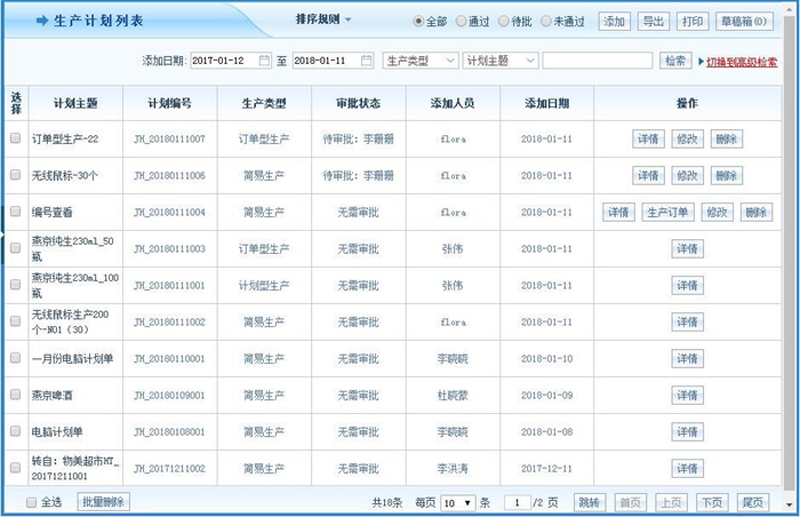 智邦国际ERP系统生产计划列表