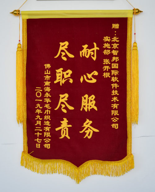 佛山市南海永华毛巾织造有限公司向智邦国际送致谢锦旗