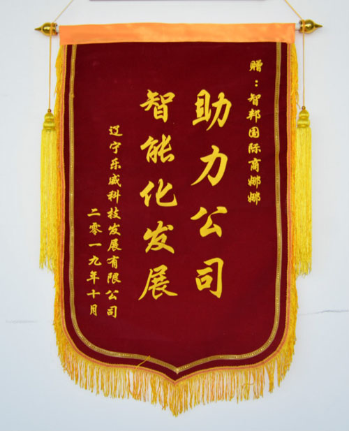 辽宁乐威科技发展有限公司向智邦国际送致谢锦旗