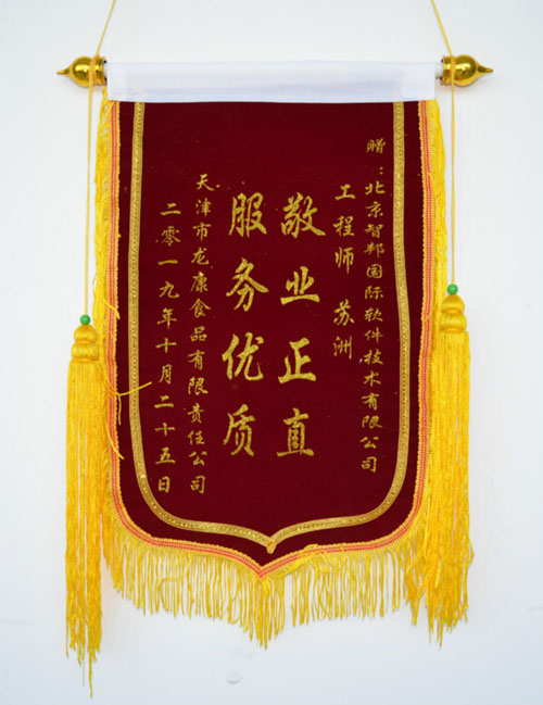 天津市龙康食品有限责任公司向智邦国际送致谢锦旗