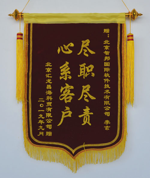 北京汇龙昌海科贸有限公司向智邦国际送致谢锦旗