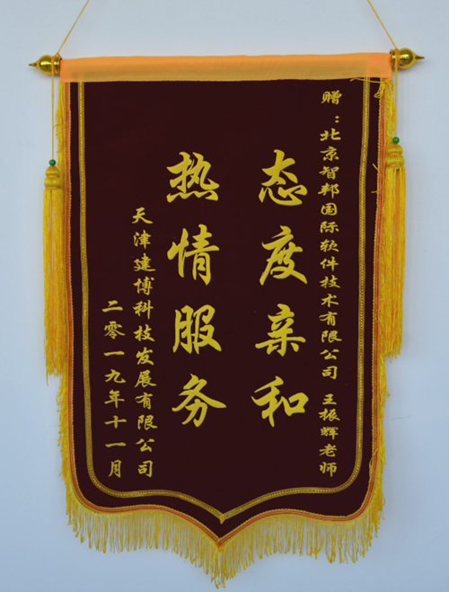 天津建博科技发展有限公司向智邦国际送致谢锦旗