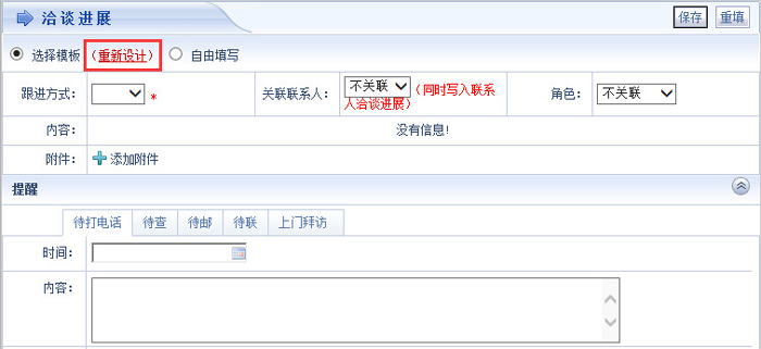 智邦国际ERP系统洽谈进展模板添加界面