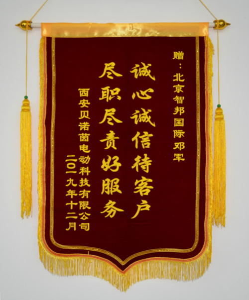 西安贝诺茵电子科技有限公司向智邦国际送致谢锦旗