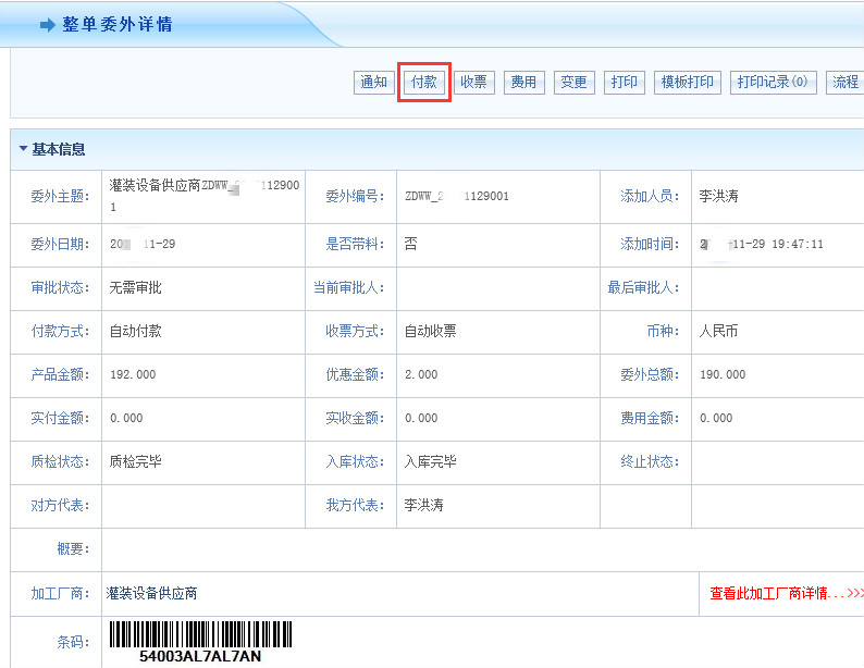 一、由于企业在生产方面大部分都是带料委外加工,因此在系统中可以根据需要添加整单委外单,并且支持在整单委外单上建立委外付款,无需多次核对信息,只需一键核算,系统则会自动核算整个委外单的相关费用,提高效率的同时也避免了一些细节错误。还可以记录生产过程委外产品的基本信息,也支持单个及批量委外质检,业务人员可以通过系统准确弄清,委外过程中企业发了多少料,回收了多少合格产品,工废数量以及料废数量等,从而对于在制数量以及加工费用结算有一个正确合理的依据,全力保障生产高效、有序进行。