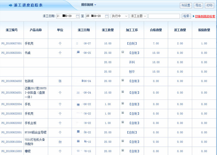 智邦国际ERP系统派工进度追踪表
