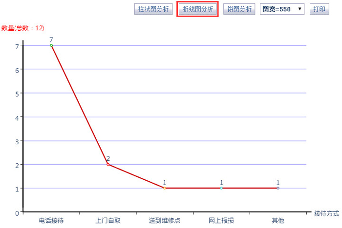 智邦国际ERP系统按接待方式折线图分析维修数量