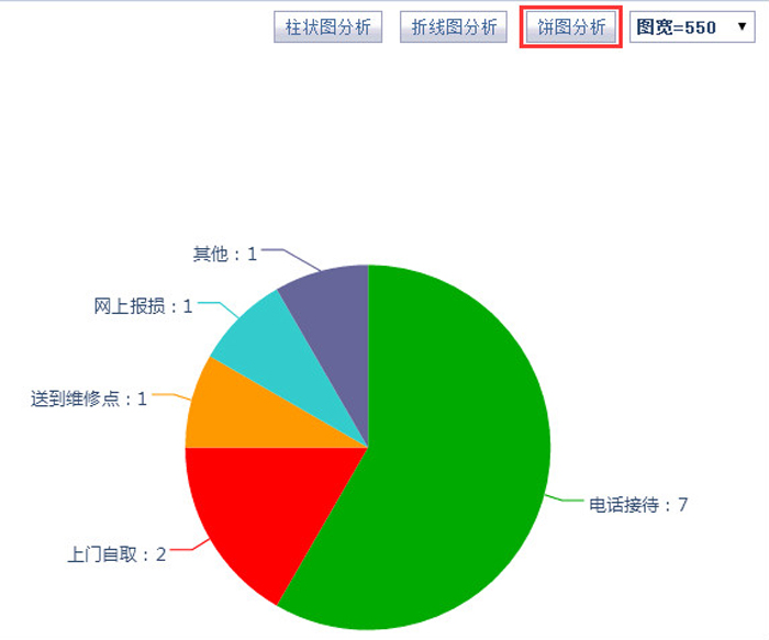智邦国际ERP系统按接待方式饼图分析维修数量