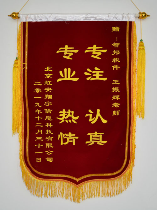 北京虹安翔宇信息科技有限公司向智邦国际送致谢锦旗