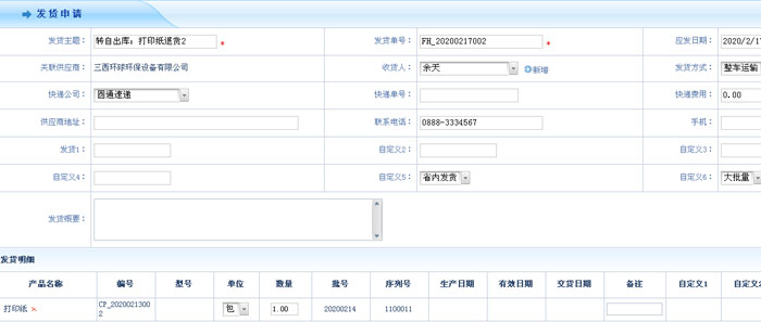 一、在系统中,企业可根据管理需求,自由设置发货方式。例如在设置合同流程时,即可一键设置在合同建立的同时直接完成出库与发货,无需二次申请与确认,加快发货效率,提升客户满意度。从出库管理的待申请发货,同样支持一键处理所有未发货订单,确保信息准确性的同时也能够随需应变,灵活化进行发货。维修配件的出库、发货和收款也可直接被合同关联,加快维修速度。系统还为企业提供未发货明细表、已发货明细表、发货费用统计分析等图表,科学计算智能统计,所有数据实时同步更新,帮助企业提高决策能力,助力企业构建可视、可控的信息共享管理平台,让办公变得更加简单与轻松。