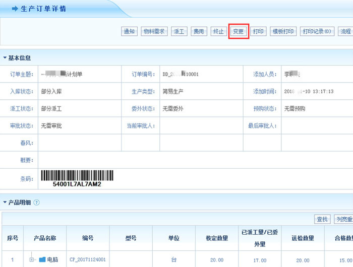 智邦国际ERP系统一键变更生产订单