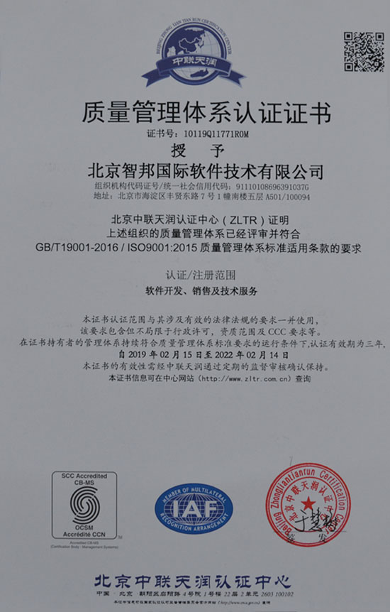 除了从上到下、从内到外集思广益打造高品质产品,智邦国际更主动对标国内国际质量体系。从ISO9001:2008,到ISO9001:2015,再到中国市场信用AAA级企业等,目前已经拥有40多项自主知识产权和认证。除了通过质量管理体系版本的丰富和升级,不断强化质量管理,持续增强客户满意。更将其与组织架构、业务流程等形成质量管理矩阵,多维度共同推进各个环节质量管理,用敬畏心和责任心守护企业信息化转型。
