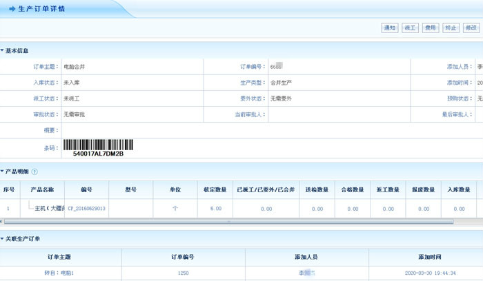 智邦国际ERP系统生产订单详情