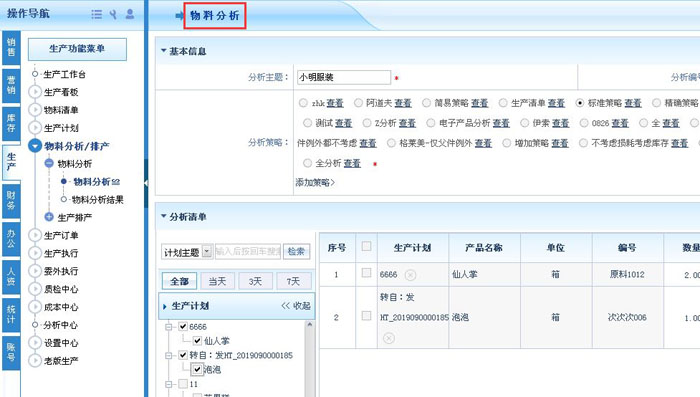 智邦国际ERP系统一键物料分析