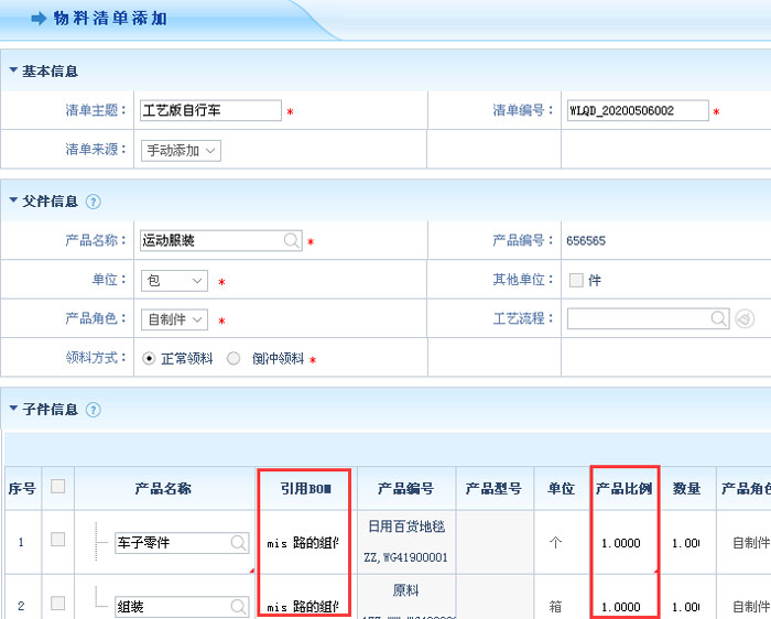 智邦国际ERP系统根据BOM比例一键联动运算