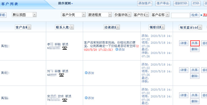 智邦国际ERP系统一键共享客户