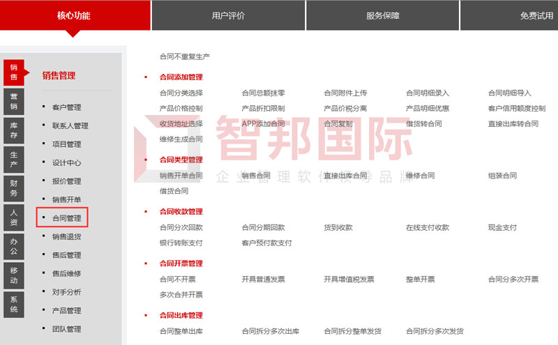 智邦国际ERP系统合同管理核心功能
