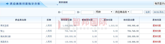 智邦国际ERP系统供应商预付款统计分析