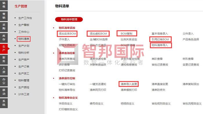 智邦国际ERP系统物料清单功能表