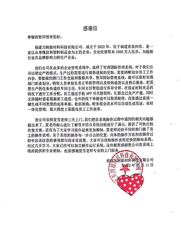 如今,ERP系统在企业管理中得到了广泛应用。相信通过引进智邦国际ERP系统,万舸新材料科技能够在一个平台上实现一站式管理,智能拆解生产任务,合理配置企业生产资源,可视化生产流程,规范生产作业,从而超预期达成生产目标。