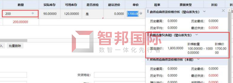 功能价值:智邦国际32.09版本,新增协同式采购价格方案,可按需设置产品固定价、阶梯价,还可按供应商、按供应商分类分别设置,并可设置方案有效期、优先级,以及新增多个方案等;添加预购单、采购单时,自动根据供应商、产品、数量等,实时核算和呈现采购价格方案,联控采购成本;同时支持手动修改价格,制单简捷精准,审核便捷高效,采购全程大大降本提效。