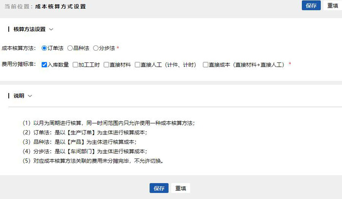 智邦国际ERP系统成本核算方式设置(局部图)