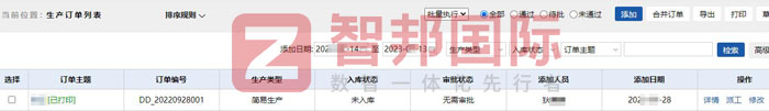 智邦国际ERP系统生产订单列表(局部图)