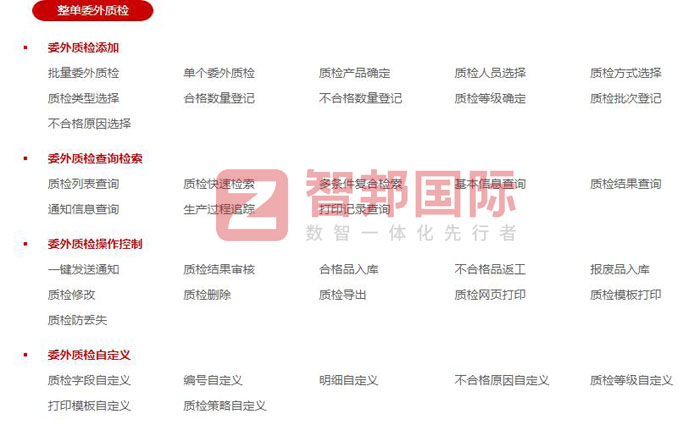 智邦国际ERP系统生产质检功能表(局部图)