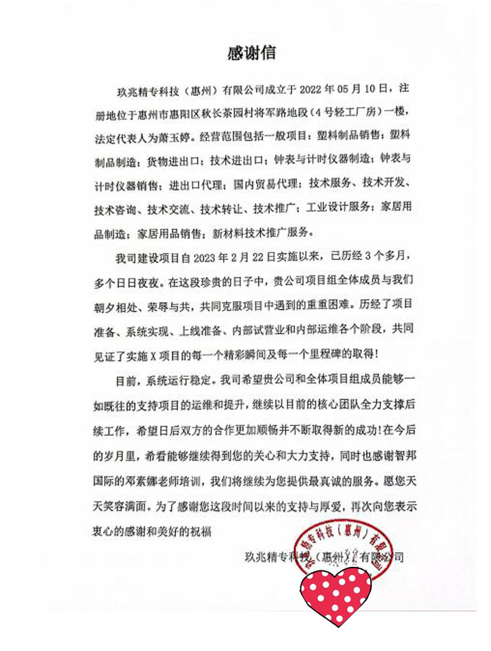 近日,玖兆精专科技(惠州)有限公司签约智邦国际,希望通过智邦国际ERP系统的使用,促使生产过程自动化、智能化、可视化,释放生产柔韧性。
