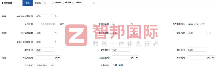 智邦国际ERP系统支持在线产品添加,可自定义设置产品的销售出库超量上限、采购提前期、预计销售周期、最小采购量、最小包装、库存下限、安全库存、库存上限、产品有效期、失效提前期、养护周期等,还可对产品进行质检管理、批号管理等,建立线上产品全生命周期管理。